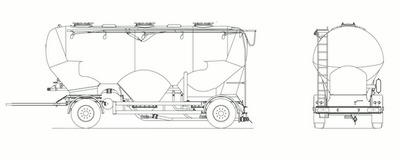 Прицеп-цистерна муковоз Сеспель 964505 изготовлен из алюминиевого сплава, предназначен для перевозки бестарных, сыпучих грузов объемной массой не более 1,1 м3 по автомобильным дорогам 1-3 категорий условий эксплуатации.