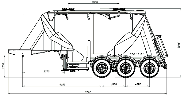 Полуприцеп-цистерна муковоз комбикормовоз 964822 изготовлен из алюминиевого сплава, предназначен для перевозки бестарных, сыпучих грузов объемной массой не более 1,1 м3 по автомобильным дорогам 1-3 категорий условий эксплуатации.