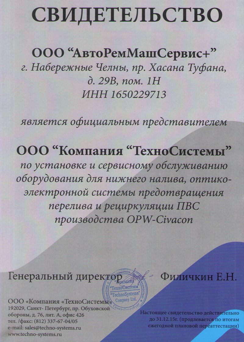 «АвтоИндустрия» является оффициальным представителем «Компании «ТехноСистемы» по установке и сервисному обслуживанию оборудования OPW-Civacon.